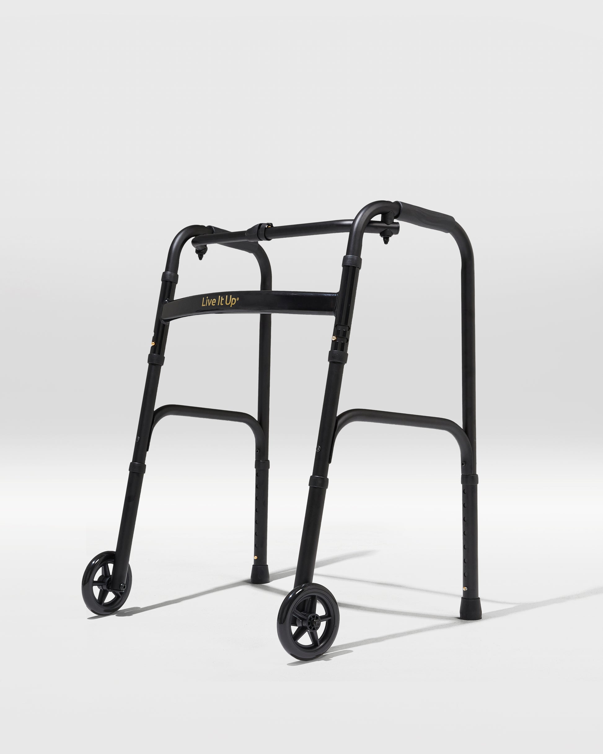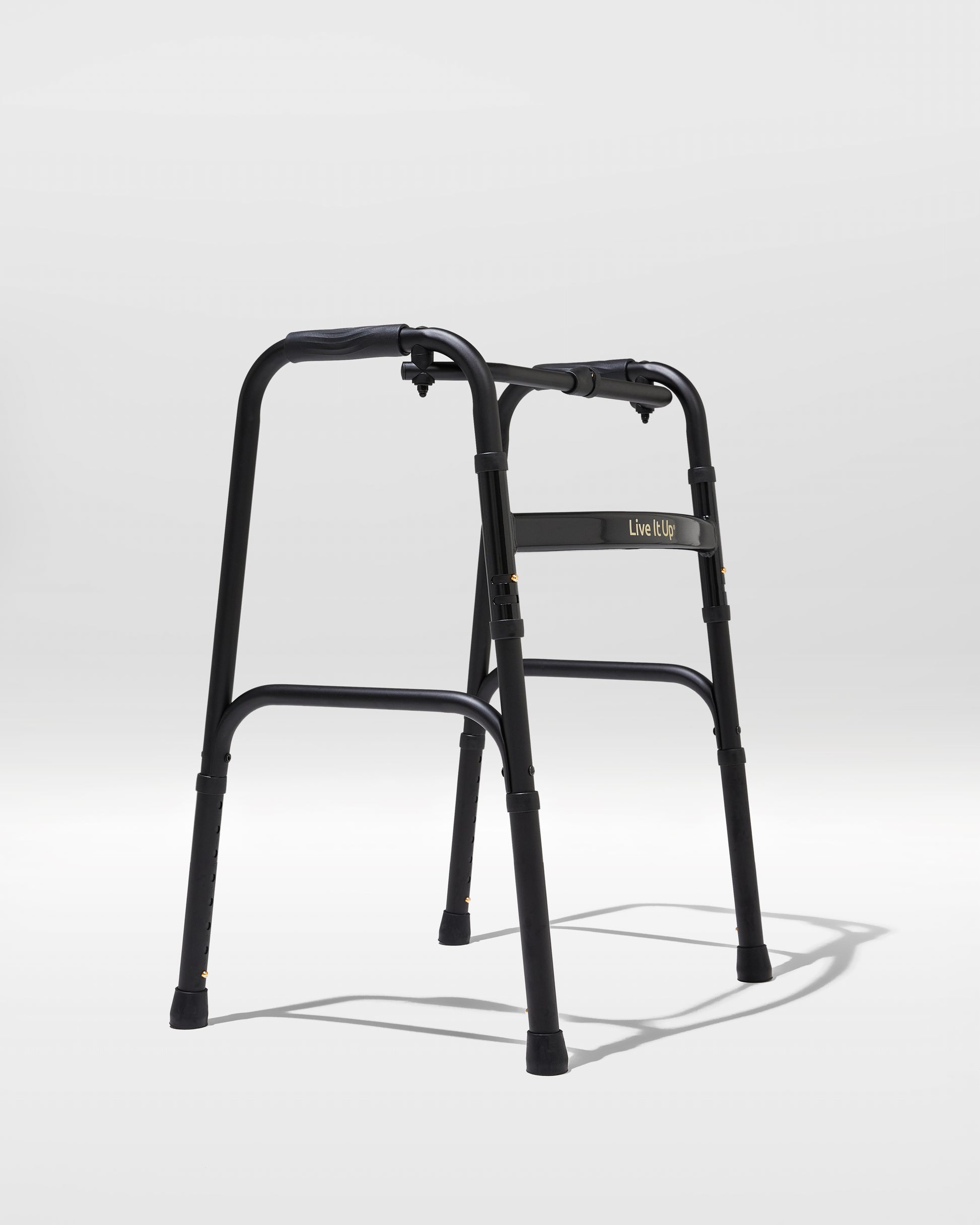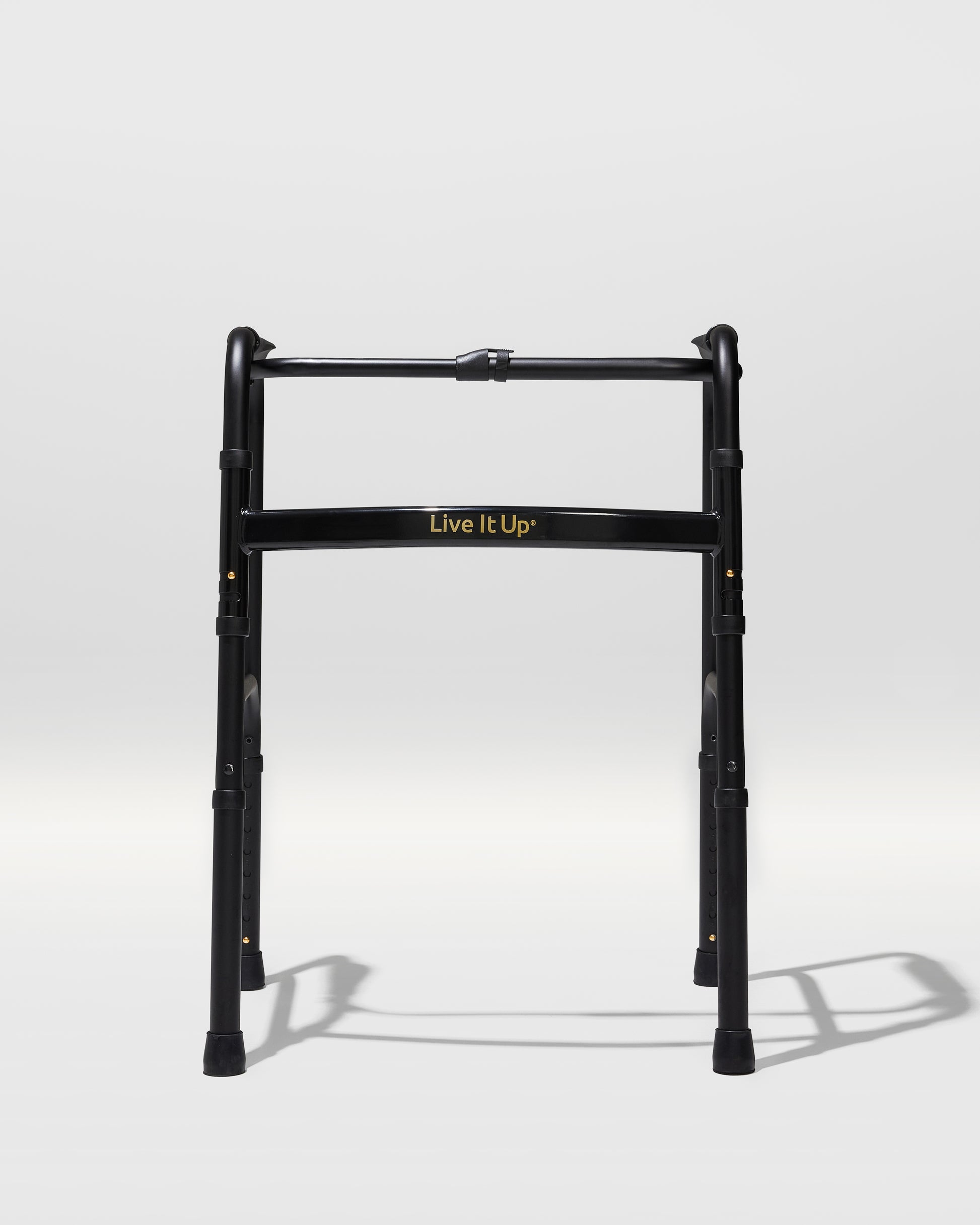 The LiveItUp™ Walking Frame is designed for those who value both style and function. Its luxurious matte finish, accented with subtle gold detailing, elevates a traditional mobility aid into a statement of sophistication.